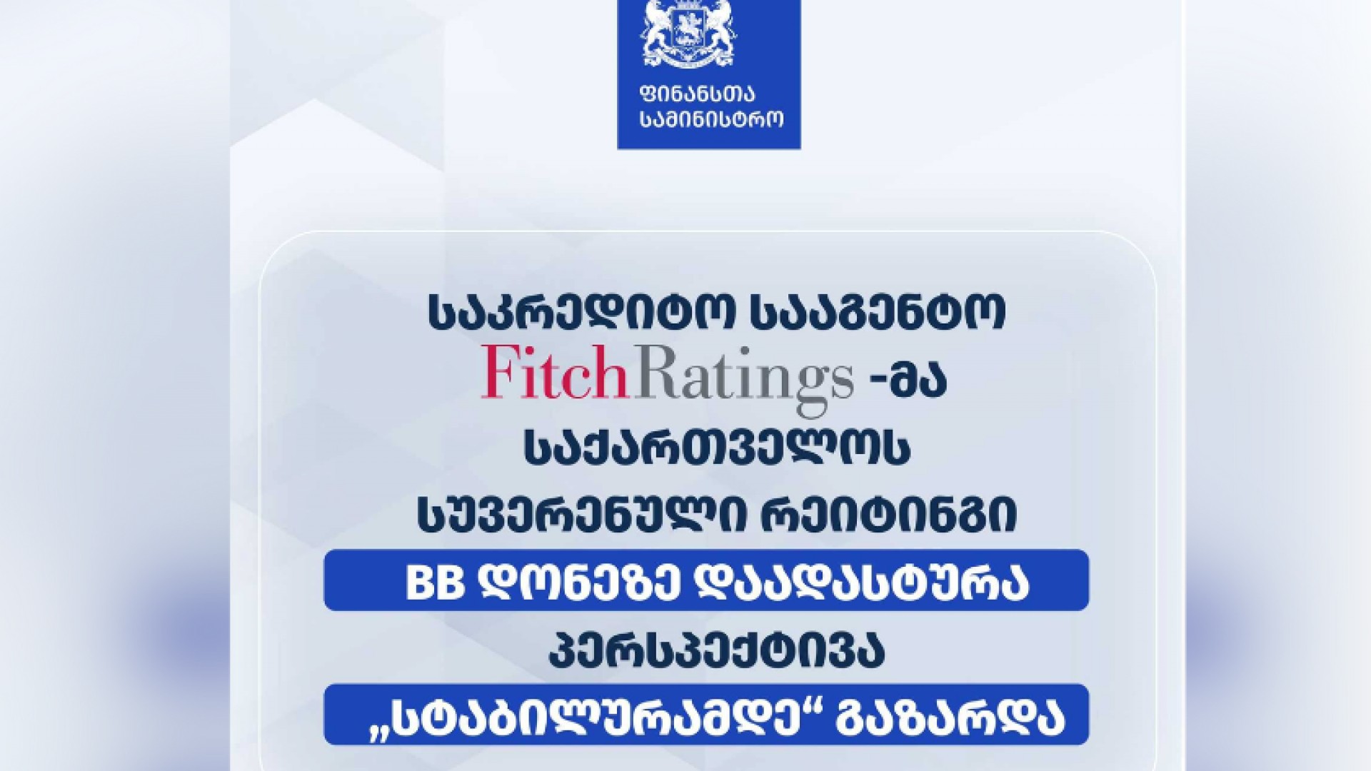 საკრედიტო სააგენტო “ფიჩმა” (Fitch) საქართველოს სუვერენული რეიტინგი BB დონეზე დაადასტურა და პერსპექტივა “სტაბილურამდე” გააუმჯობესა.