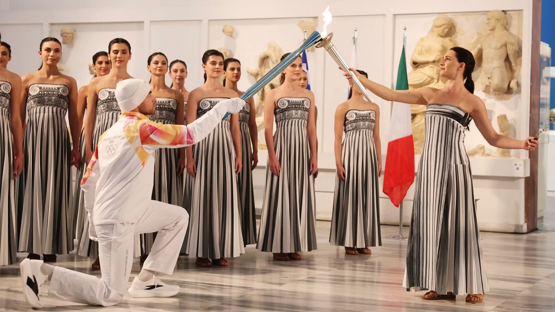 ანტიკურ ოლიმპიაში, სადაც ოლიმპიურ თამაშებს ჩაეყარა საფუძველი, მილანი/კორტინას XXV ზამთრის ოლიმპიური თამაშებისთვის ცეცხლი დაინთო. ოლიმპიური მოძრაობის ერთ-ერთი უმთავრესი სიმბოლოს, ოლიმპიური ცეცხლის დანთების ცერემონია ჰერას ტაძრის ნანგრევებთან შედგა.