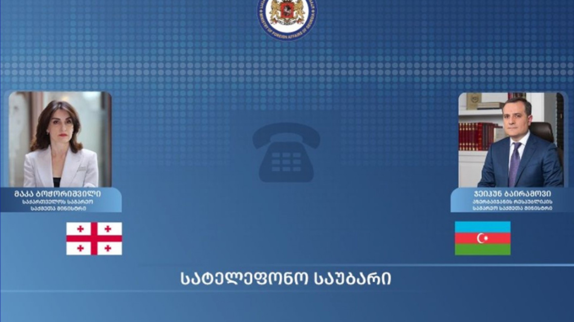 საქართველოს საგარეო საქმეთა მინისტრმა, მაკა ბოჭორიშვილმა სატელეფონო საუბარი გამართა აზერბაიჯანის რესპუბლიკის საგარეო საქმეთა მინისტრთან, ჯეიჰუნ ბაირამოვთან.