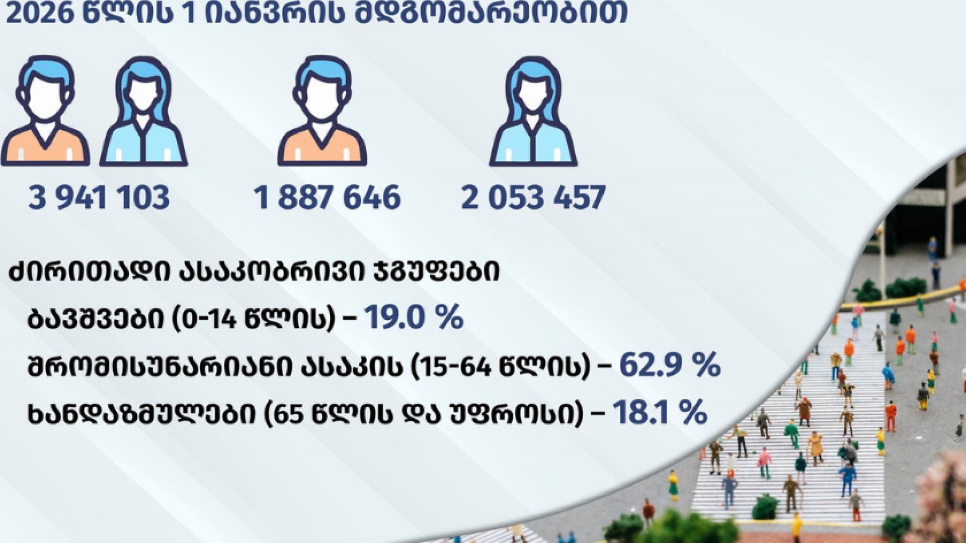 „2026 წლის 1 იანვრის მდგომარეობით, საქართველოს მოსახლეობის რიცხოვნობამ 3 941.1