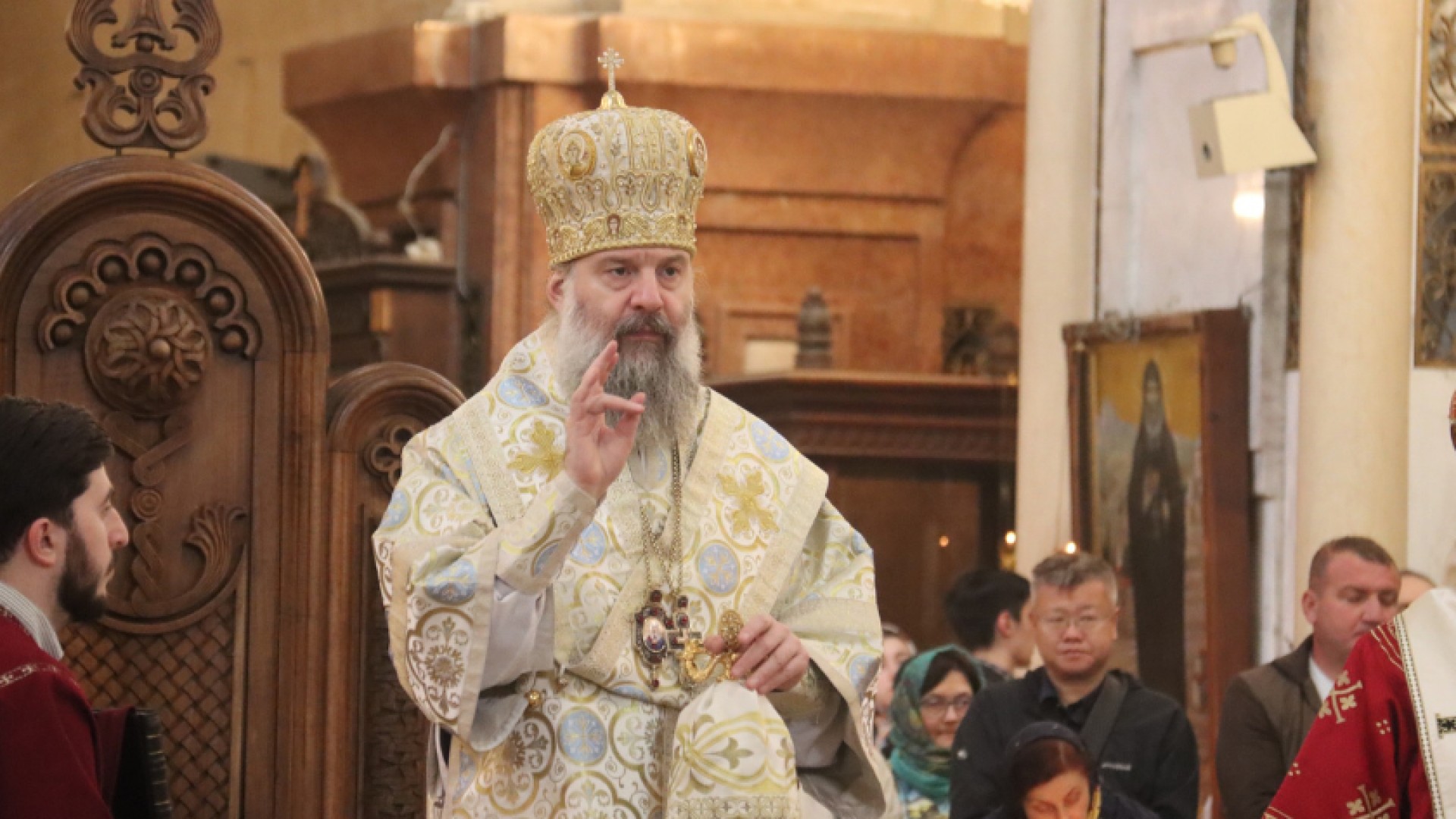 ძვირფასო ძმებო და დებო, მენელსაცხებლე დედების სახით დღეს ეკლესია განადიდებს ყველა ქალს, ვინც ქრისტეს მსახურების ღვაწლით პასუხს სცემს ქალის დიდ მოწოდებას და ღირსებას, ადასტურებს ამ ღირსებას.