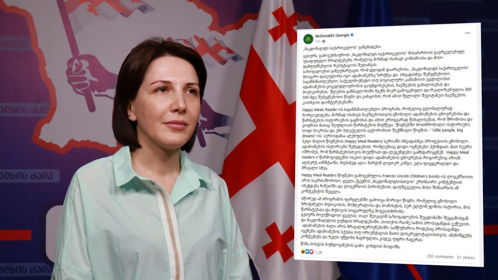 „ხალხის ძალის“ წევრი თამთა მეგრელიშვილი „მაკდონალდსისა“ და თემურ ჭყონიას გარშემო განვითარებულ მოვლენებს სოციალურ ქსელში ეხმაურება.