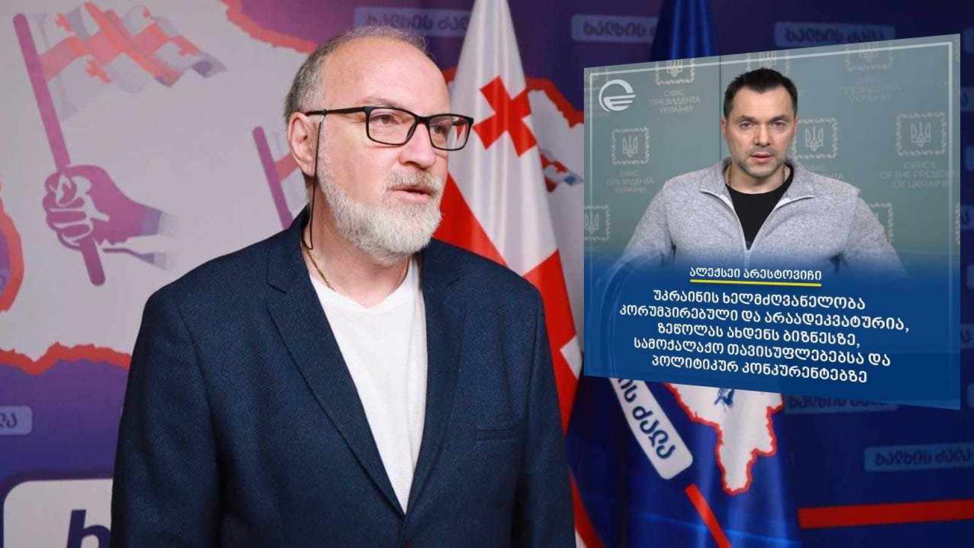"ხალხის ძალის" წევრი, ანალიტიკოსი დავით ქართველიშვილი სოციალურ ქსელში ეხმაურება უკრაინის პრეზიდენტის ადმინისტრაციის ყოფილი მრჩევლის ალექსეი არესტოვიჩის განცხადებას იმასთან დაკავშირებით, რომ უკრაინის ხელისუფლება კორუმპირებულია, ავიწროვებს ბიზნესს და ა.შ.