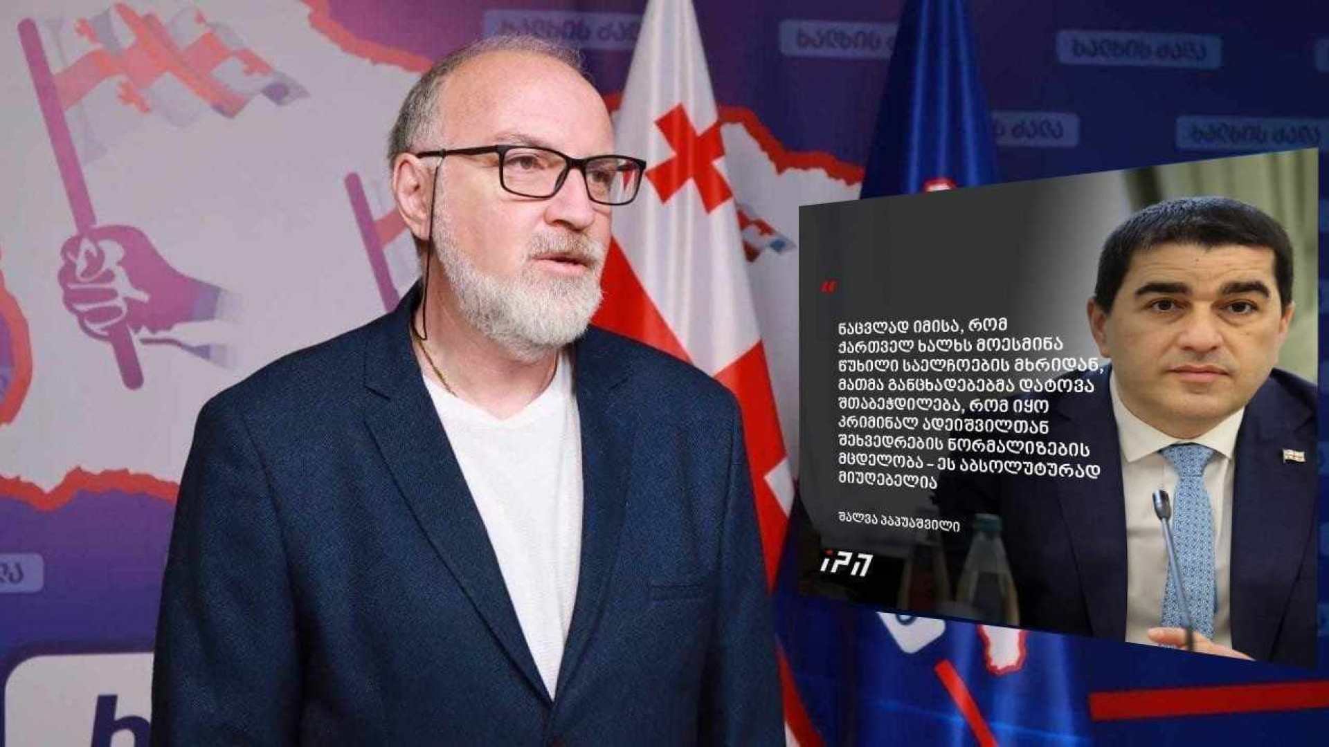 ნელ-ნელა, თუმცა დაუფარავად მიდის საქართველოს, როგორც დამოუკიდებელი სახელმწიფოს დე-ფაქტო უარყოფა/დელეგიტიმაცია და ნეოკოლონიზატორების მიერ თავის "პლანტაციებზე" ჩვენთვის "შესაფერისი ადგილის" მიჩენა, - ასე ეხმიანება „ხალხის ძალის“ წევრი დავით ქართველიშვილი, პარლამენტის თავმჯდომარის, შალვა პაპუაშვილის განცხადებას, რომლის თქმითაც, ნაცვლად იმისა, რომ ქართველ ხალხს მოესმინა წუხილი საელჩოების მხრიდან, მათმა განცხადებებმა დატოვა შთაბეჭდილება, რომ იყო მცდელობა ადეიშვილთან, კრიმინალთან შეხვედრების ნორმალიზებისა და ეს არის აბსოლუტურად მიუღებელი.
